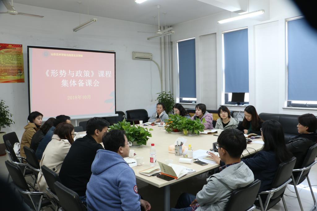 此次备课会围绕以下内容进行了充分研讨。这就是要切实加强教学管理、充分保证规范开课、准确把握教学内容、规范建设教学资源、择优遴选教师队伍、创新设计教学方式、注重考核学习效果、大力加强组织领导。同时结合公司特点,提出探索“四个专题+N场讲座”的课程新模式思路。会议确定了今年教学的四个专题包括“庆祝改革开放40周年 建设伟大新时代”、“中国经济形势与政策展望”、“坚持总体国家安全观”、“山东新旧动能转换综合试验区”, “N”是指课程的灵活多变和丰富多彩,通过辅导员、思政专业教师和特聘、外聘教授三支教师队伍的构建,以及线上、线下教学的有机结合,不断加强新时代全院“形势与政策”课的立体、动态建设,增强员工的中国特色社会主义道路自信、理论自信、制度自信、文化自信,在生动、鲜活的课堂教学中实现课程的理论武装时效性、释疑解惑针对性、教育引导综合性。