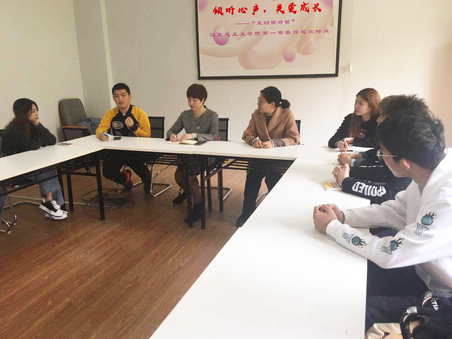 恳谈会上,同学们积极发言、气氛活跃。谈论的内容从思政课教学内容到教学形式,从现阶段思政课的学习到几年后的考研备考,从入党申请到专业的学习等等方方面面同学们感兴趣的话题,对于同学们提出的问题和困惑,褚教授一一进行了解答。褚教授指出同学们要用好思政课这个大课堂,真正在课堂上学有所获,不断提高自身的综合素质,做有理想、有本领、有担当的时代新人,同时褚老师也表示,对于同学们提出的问题和建议,在今后的教学中也会进一步反思,不断提高思政课的吸引力和实效性。