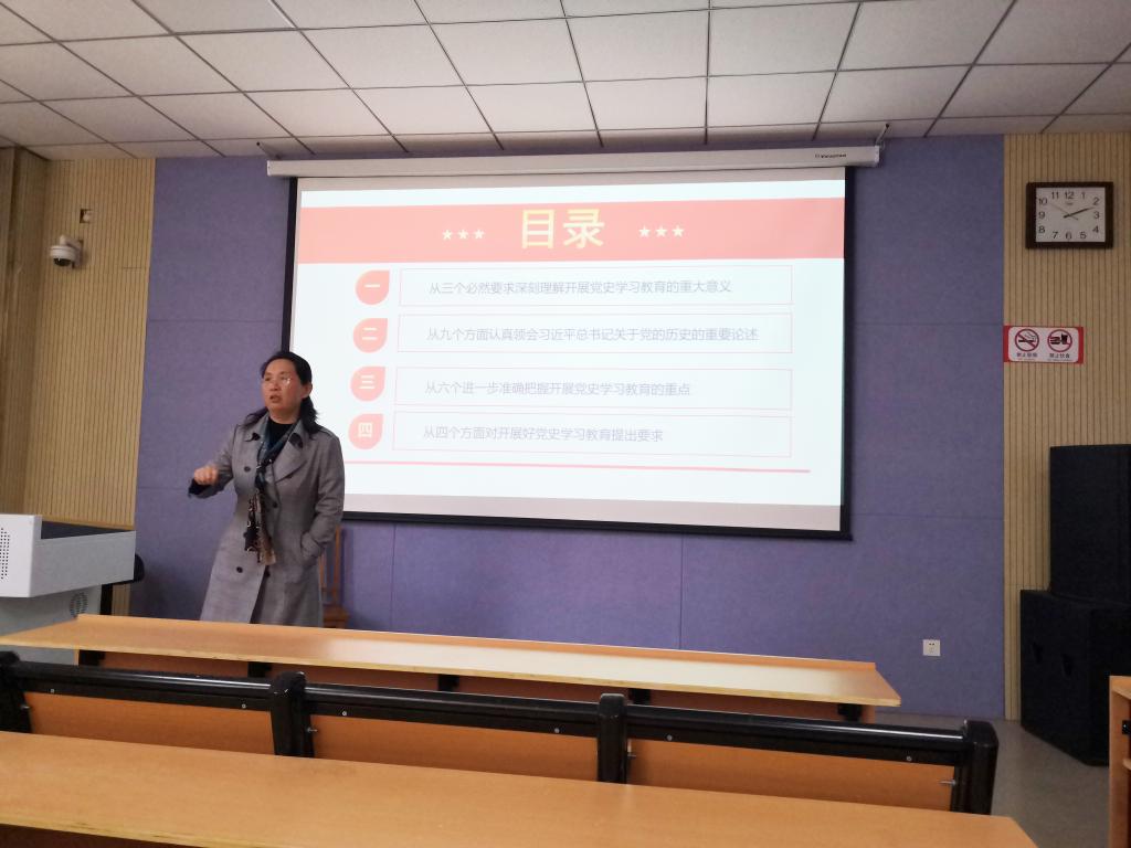 刘荣以“回望百年征程、凝聚前行伟力”为题展开授课,她从“为什么学、学什么、如何学”三个问题线索出发,阐释了学史明理、学史增信、学史崇德、学史力行的内涵,重点讲授了“从三个必然要求深刻理解开展党史学习教育的重大意义、从九个方面认真领会习近平总书记关于党的历史的重要论述、从六个进一步准确把握开展党史学习教育的重点、从四个方面对开展好党史学习教育提出要求”四项内容,并号召全体党员通过党史学习教育学党史、悟思想、办实事、开新局,以优异教学成绩迎接建党100周年!