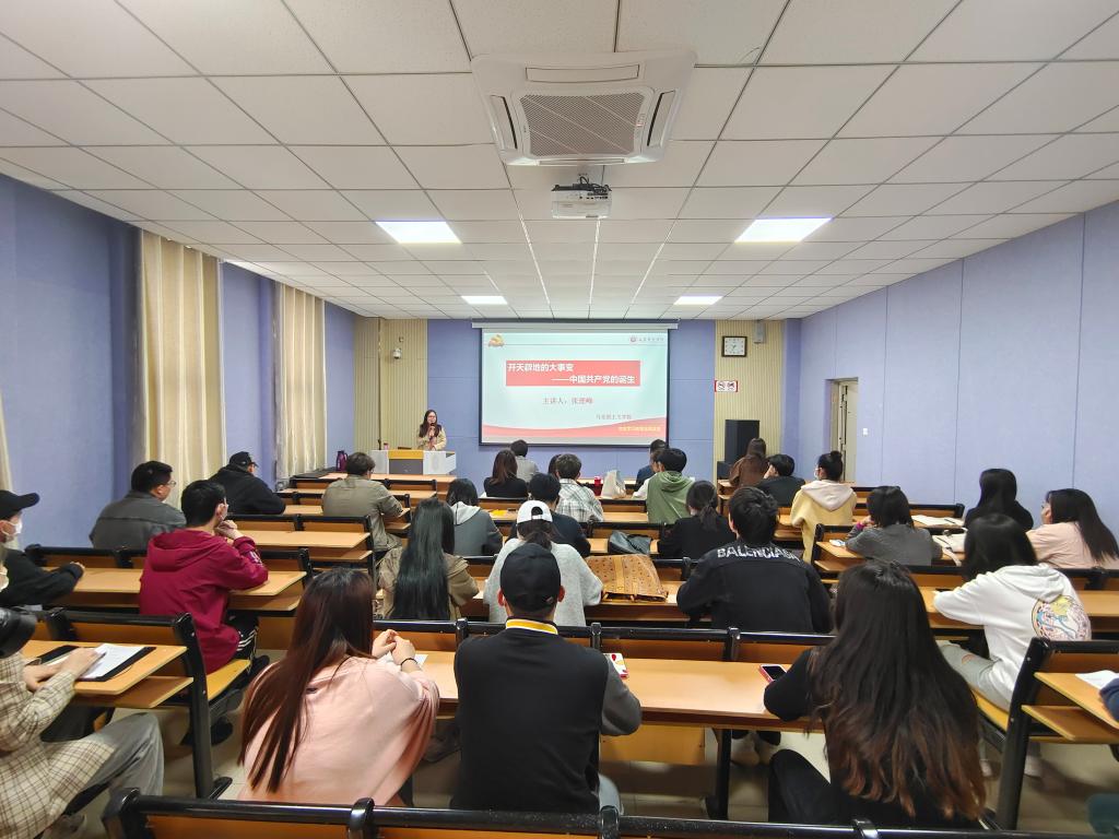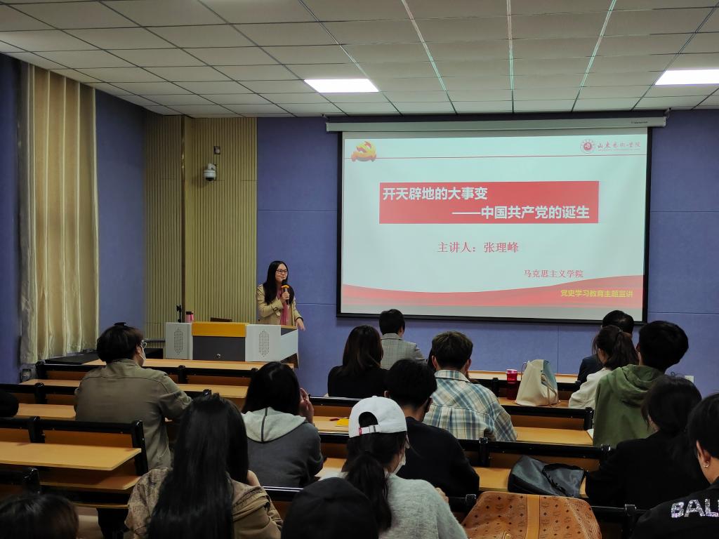 张理峰以“开天辟地的大事变——中国共产党的诞生”为题,从新文化运动、五四运动、中国共产党的诞生和中国共产党成立的历史特点和重大意义四个方面为同学们进行了系统深入的党史学习教育。在宣讲中,她用丰富的史料、精辟生动的语言,展现了中国早期马克思主义思想运动、中国共产党的早期组织、中国共产党第一次全国代表大会的召开等波澜壮阔的历史事件,帮助同学们在党史学习教育中树立正确的党史观,让同学们明白建立马克思主义政党来领导中国革命,是中国最先进分子的共同要求,中国共产党的诞生,是近现代中国历史发展的必然产物,是中国人民在救亡图存斗争中顽强求索的必然产物,中国共产党紧紧依靠人民,跨过一道又一道沟坎,取得一个又一个胜利,为中华民族作出了伟大的历史贡献。