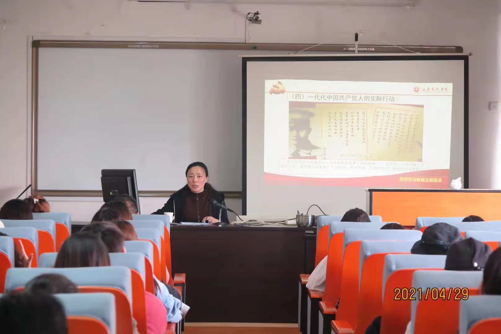 鞠忠美从我们党的初心使命、党的光辉历程、党当前和今后一个时期的历史任务和每一名师生的历史责任四个方面,为师生们进行了系统深入的党史学习教育专题宣讲。她用众多的理论依据和丰富的史料知识讲述了中国共产党成立百年以来披荆斩棘、艰苦创业、砥砺前行,在苦难中铸就辉煌的历史,展望了中国共产党领导中国人民实现中华民族伟大复兴的远景目标。
