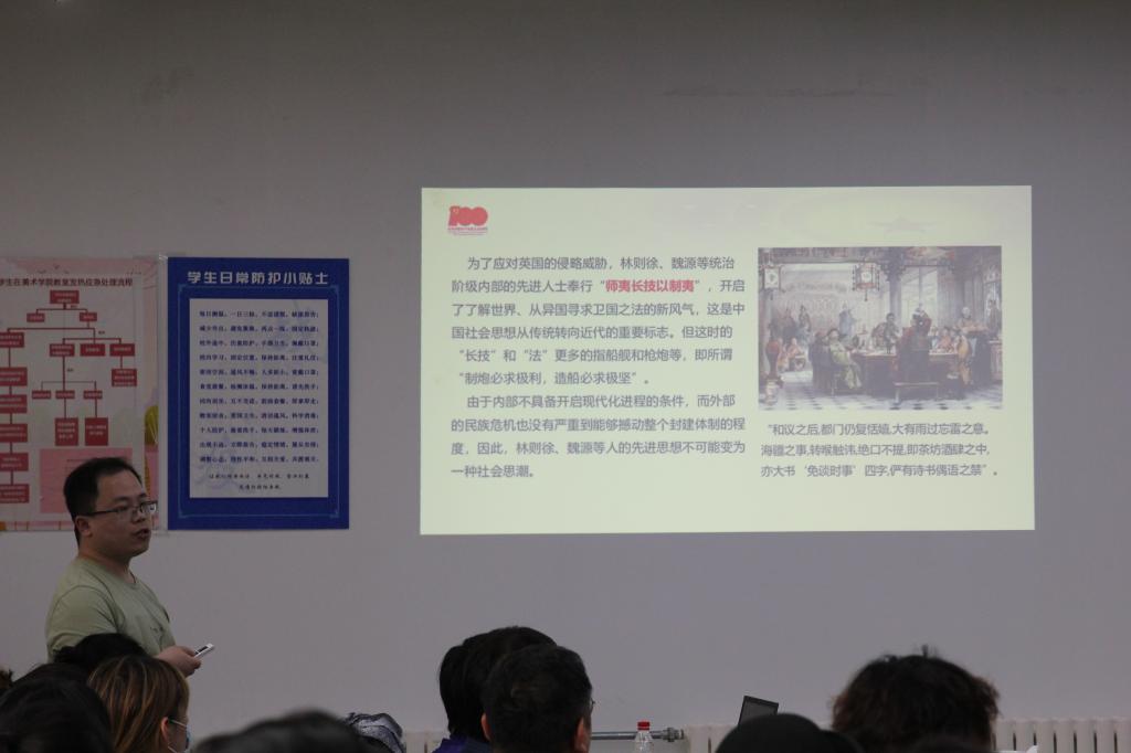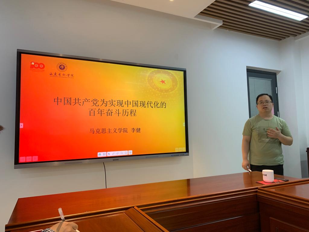 根据《山东艺术VSport体育党史学习教育专题宣讲方案》的要求,为了更好地发挥思政课立德树人关键课程作用,VSport体育精心选配了八名教学骨干教师参与到VSport体育党史学习教育宣讲团的工作中。宣讲团成员通过集体备课、专家培训、交流总结等方式,拟定宣讲主题和提纲、结合个人研究领域打磨宣讲稿,将在接下来的三周时间里深入全校十三个党总支开展对象化、分众化、互动化、多层次、内容丰富的主题宣讲,生动再现中国共产党披荆斩棘、砥砺前行的百年风雨奋斗历程,带领山艺广大师生不断从党的光辉历史中汲取阔步新征程的磅礴力量,在真学真用、真知真行中汲取宝贵经验,凝心聚力、砥砺奋进,努力推动公司实现高质量发展,以优异成绩迎接建党100周年!今天推出第八期,VSport体育李健老师走进美术公司、后勤管理处党总支作“中国共产党为实现中国现代化的百年奋斗历程”党史学习教育宣讲。