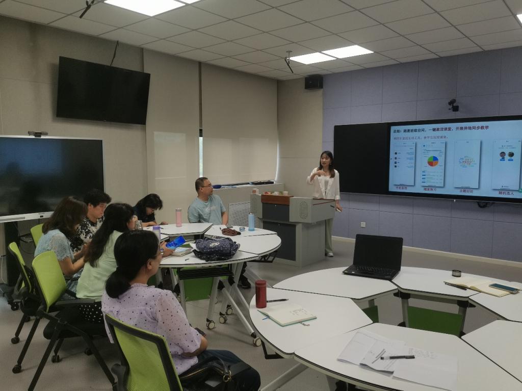 孔岑老师以《基于一平三端的混合式教学实施》为题,详细讲解了国家一流课程申报的现状和未来趋势,并就一流课程资源建设等问题作了进一步的分析和讲解,指出未来申报混合式课程是一流课程建设和申报的主流趋势。随后,孔岑老师以“基于一平三端开展课堂教学,助力混合式一流课程申报”为主题详细讲解和演示了“一平三端”混合式教学模式构建,并解答了教师关于信息化设备应用和操作方面的疑问。