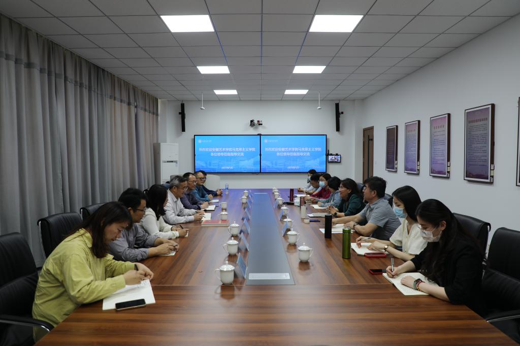 5月19日,安徽艺术公司VSport体育直属党支部书记、经理吴孔铎一行7人来公司调研交流。VSport体育党委书记王洪禹在座谈会前会见了吴孔铎一行,对其来校调研交流表示欢迎并简要介绍了公司在办学历史、办学规模、艺术实践与创作等方面的情况。
