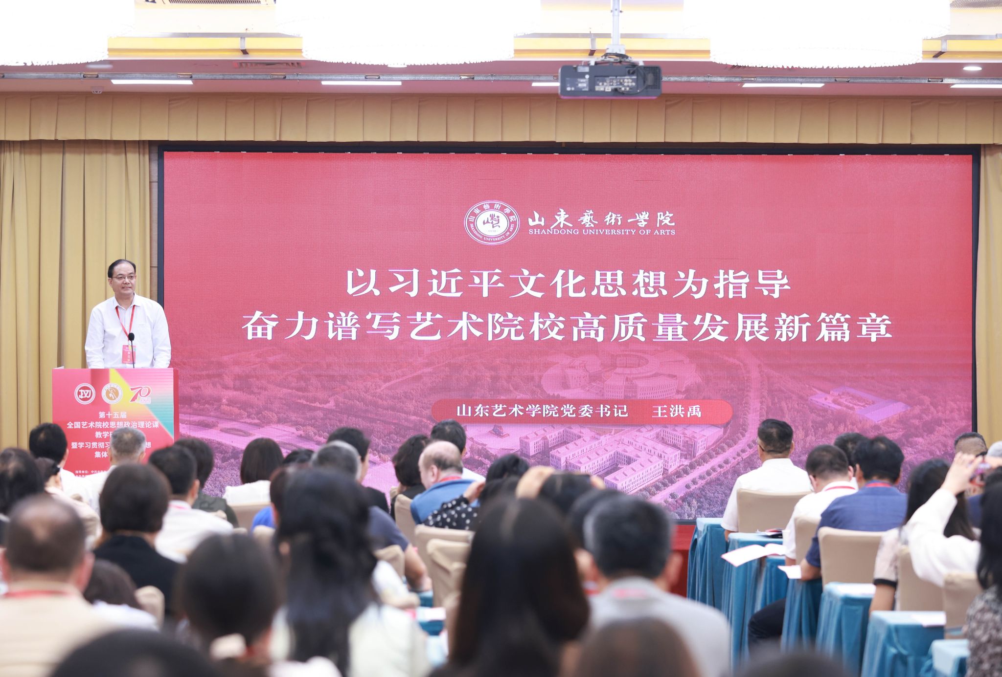 会上,王洪禹作了《以习近平文化思想为指引,奋力谱写艺术院校高质量发展新篇章》的主题发言。他梳理了习近平文化思想的发展脉络,阐述了公司在学习宣传贯彻习近平文化思想方面的主要探索和下一步工作重点。他表示,公司在学习宣传贯彻习近平文化思想上有着高度的政治自觉、思想自觉和行动自觉,始终坚持以人民为中心、为时代而艺术、以贡献为导向,努力办好人民满意的艺术教育,全力展现奋进实干的时代华彩,奋力书写服务社会的崭新篇章。他强调,习近平文化思想是新时代艺术类高等院校高质量发展的根本遵循,下一步公司将努力培养造就更多高素质专业化艺术人才,创作推出更多体现中国气派、山东风格的艺术作品,锤炼打造更多彰显公司优势的项目成果,为中华优秀传统文化的传承发展、增强中华文明传播力影响力贡献山艺力量。