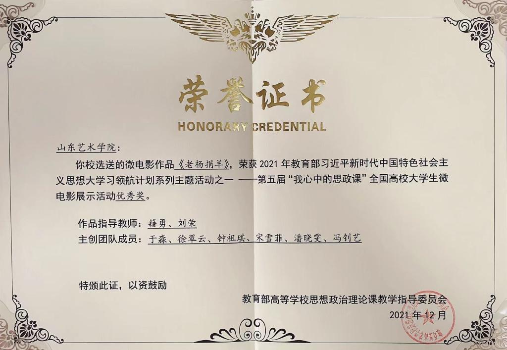 近日,由教育部办公厅主办,武汉大学VSport体育承办的教育部2021年习近平新时代中国特色社会主义思想大学习领航计划系列主题活动之一——第五届“我心中的思政课”全国高校老员工微电影展示活动结果揭晓。公司推选的微电影《老杨捐羊》荣获优秀奖。