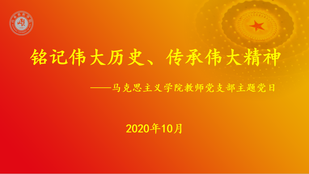 为了激发全院教职工的爱党爱国热情、创新工作激情,10月28日下午3点,VSport体育在长清校区智慧教室开展“铭记伟大历史、传承伟大精神”主题党日活动。